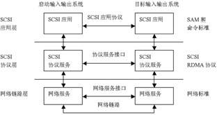 ---如图 3 所示, 服务模型分为三层,依次为网络互连层、 SCSI 协议层、 SCSI应用层。